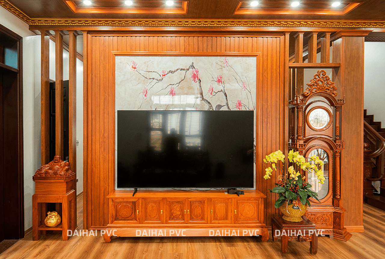 Vách gỗ nhựa cũng là một lựa chọn tuyệt vời để tạo nên phòng khách sang trọng. Với tính năng bền bỉ và chống nước, vách gỗ nhựa PVC là lựa chọn tin cậy để mang lại không gian phòng khách đẳng cấp cho gia đình bạn. Không chỉ có khả năng chống ẩm mốc và nấm mốc, vách gỗ nhựa PVC còn dễ dàng vệ sinh và bảo dưỡng. Với đa dạng về màu sắc, vách gỗ nhựa PVC sẽ giúp bạn tạo nên không gian thẩm mỹ theo phong cách riêng của mình.
