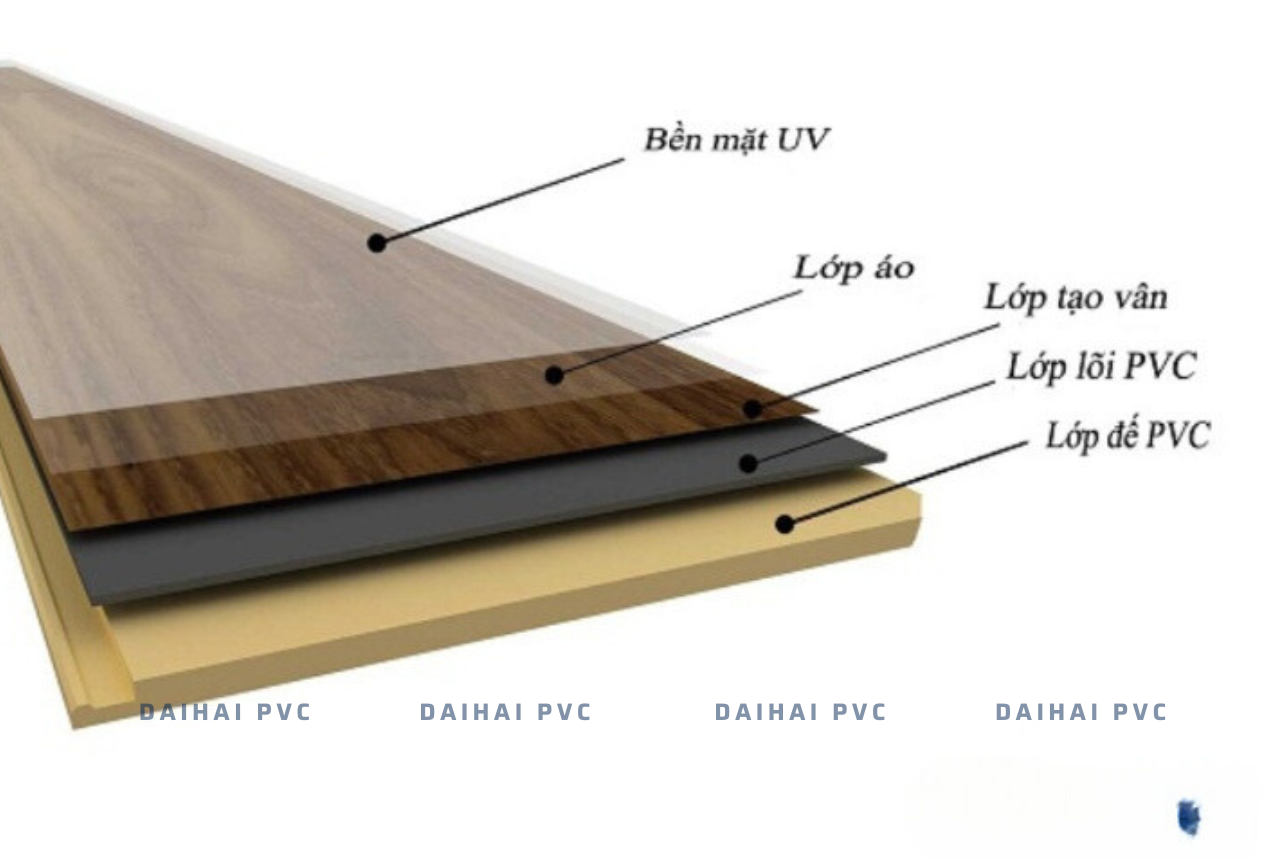 Tuy nhiên, đa số các dòng lót sàn nhựa PVC hiện nay đều được cấu thành từ 05 lớp: