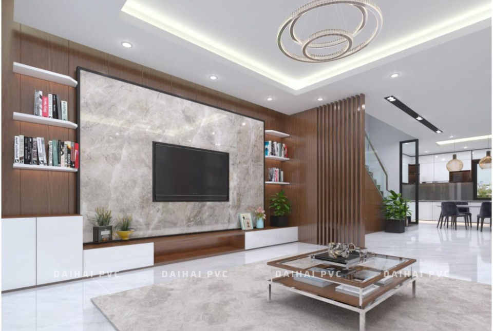 Tuy nhiên, một trong những ưu điểm nổi bật nhất của tấm nhựa PVC chính là vẻ đẹp đầy cuốn hút và sang trọng mà nó mang lại cho không gian sống. Với đa dạng các màu sắc, kết cấu và hoa văn, tấm PVC có thể tạo ra những hiệu ứng trang trí độc đáo, biến mỗi căn nhà trở nên đặc biệt và đầy cá tính.